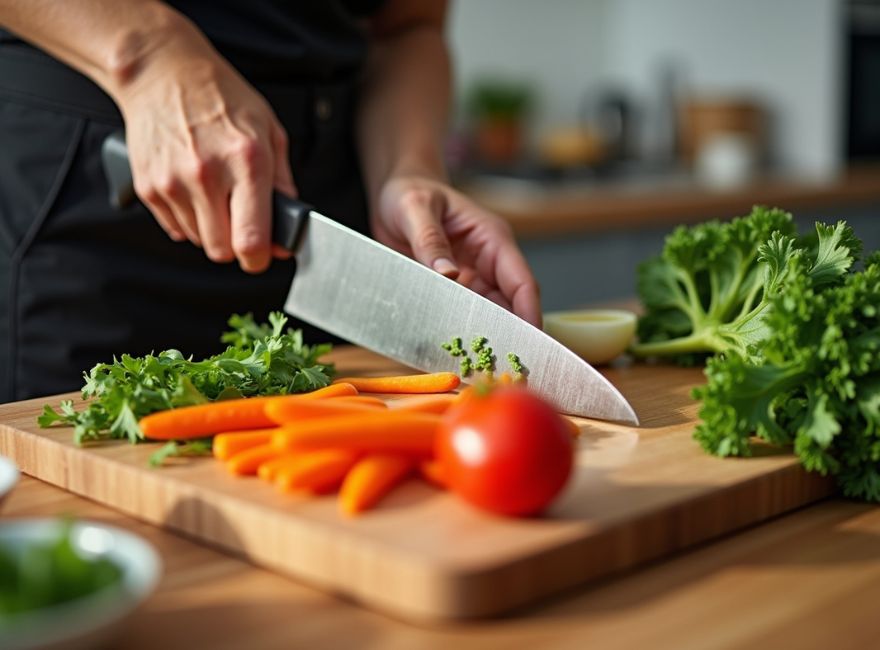 - Cuidado del filo: La madera es un material «blando» en comparación con el acero del cuchillo, lo que permite que la hoja se deslice sin mellar el filo.